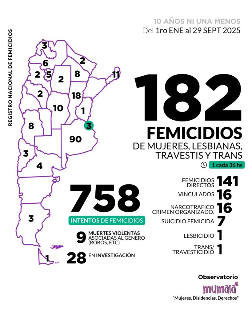 Argentina en Emergencia, 1 femicidio cada 36 hs. Informe del 1 de enero al 29 de septiembre
