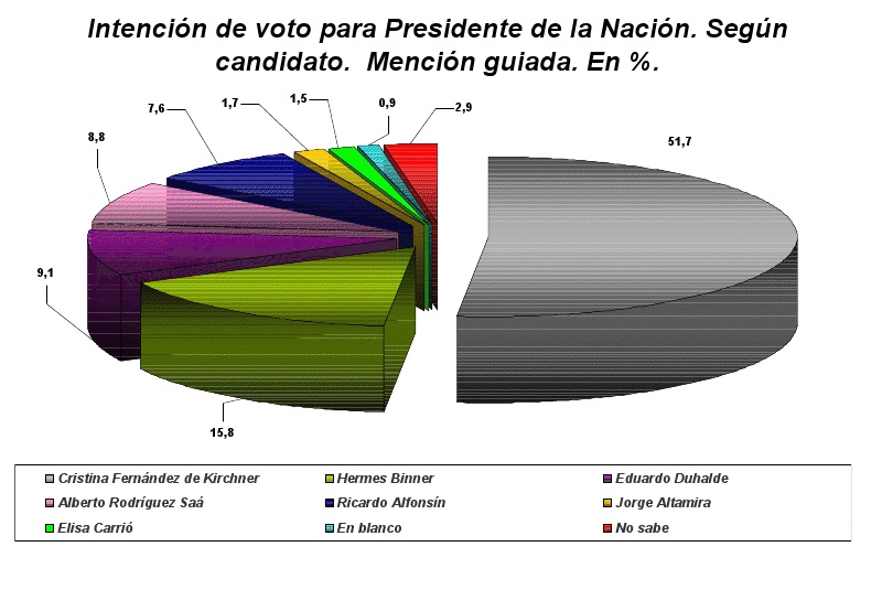 Encuesta: CFK 51,7 Binner 15,8 Duhalde 9,1 Saá 8,8 y Alfonsin 7,6