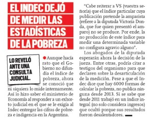 07/10/2015 Diario Popular - Nota - Política - Pag. 5 Lo reconoció ante la Justicia luego de un recurso de amparo presentado por la diputada Victoria Donda, del Frente Progresistas, para que el … Sigue leyendo El Gobierno volvió a negarse a informar el dato oficial de pobreza