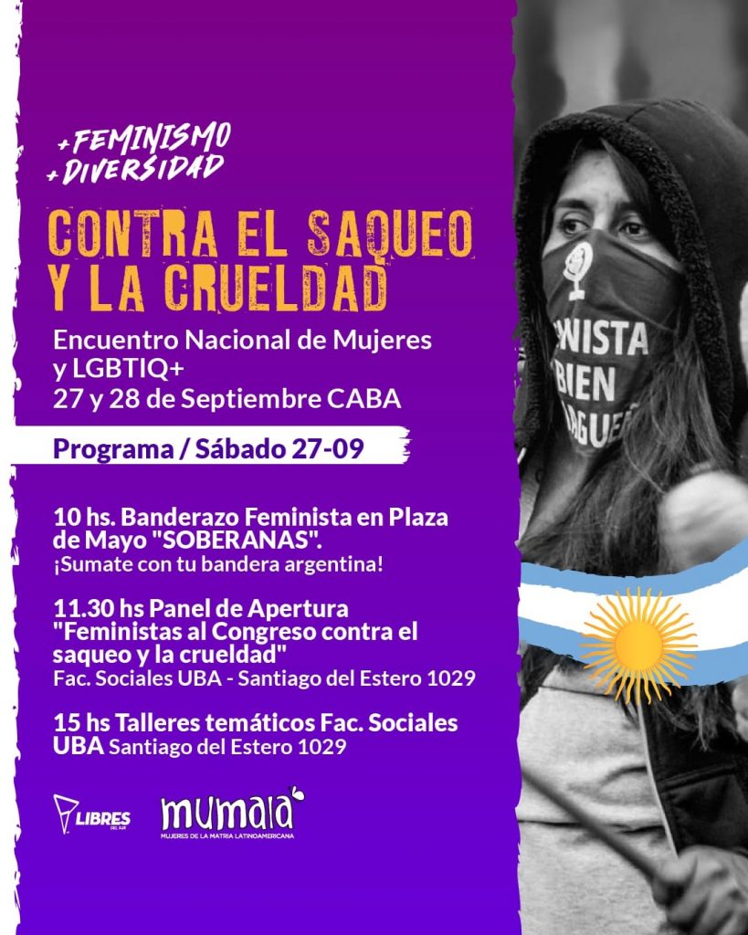 Las Mujeres de la Matria Latinoamericana - Mumalá – realizaremos el próximo 27 y 28 de Septiembre en la Ciudad Autónoma de Buenos Aires nuestro encuentro nacional “+Feminismo +Diversidad contra el saqueo y la crueldad”
