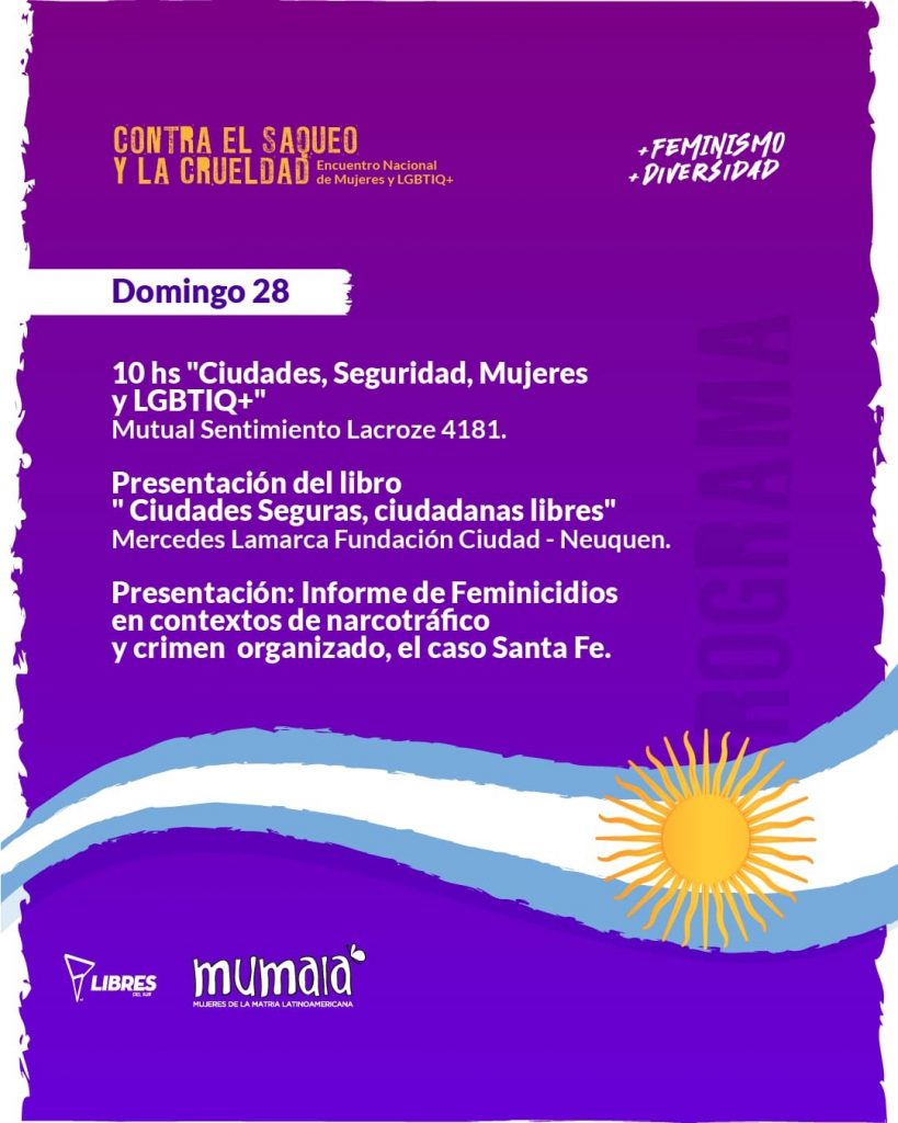 Compartiremos en la Facultad de Ciencias Sociales las propuestas de nuestro Feminismo Popular al Congreso Nacional, entre las que se encuentra la Declaración de la Emergencia Nacional en violencia de género; paneles donde trabajaremos Feminicidios en contexto de narcotráfico y crimen organizado; talleres temáticos y la participación de la marcha a Plaza de Mayo este sábado a las 16 hs exigiendo justicia por Brenda, Morena y Lara y por todas/es.