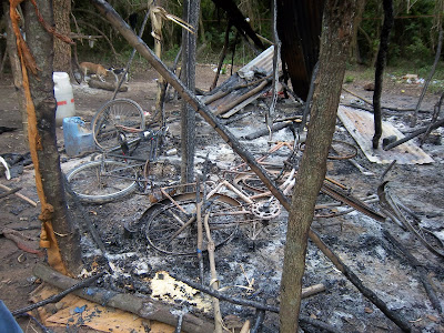 ¿La misma policía que fue testigo del momento cuando los Celias nos disparaban y sólo nos dijeron que nos lo habíamos buscado? ¿la policía que planificó que una mujer oficial nos denunciara por abuso sexual en plena discusión por la mañana? ¿la policía que vino a reprimirnos y a matarnos? ¿que desesperadamente preguntaba dónde está Félix, a ese hay que matar? ¿a la policía que luego de reprimirnos acumuló todas nuestras pertenencias y las quemó salvajemente junto a nuestras casas? ¿a la policía que subió al hermano Roberto a un camión y ya detenido, en el suelo, y muy golpeado le preguntaba a patadas dónde estaba Félix? ¿a la policía que en la comisaría le pedían las mujeres de pasar al baño y nos respondían que sólo si les pagábamos? ¿a la que le robaron a Félix su netbook y celulares que estaban en su computadora en la comisaría?