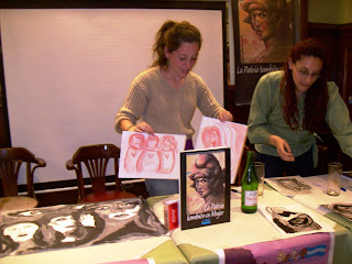 Mientras Vanesa y Julieta pintaron espontáneamente algunas obras en tinta china, tempera y carbonilla, Sandra Armengol recorría las paginas del libro adentrándose en la historia de cada una de las mujeres que tuvieron un papel protagónico en la luchas por los derechos sociales y la construcción un futuro con igualdad.