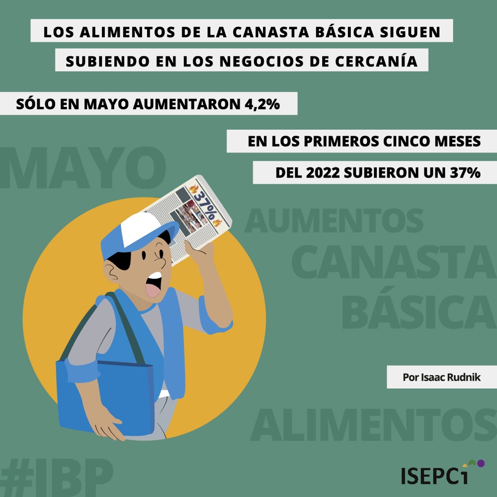 Los alimentos de la canasta básica siguen subiendo en los comercios de cercanía. Sólo en mayo aumentaron 4,20% los alimentos. En los primeros cinco meses de 2022 subieron 37%, mientras … Sigue leyendo Los alimentos de la canasta básica siguen subiendo. Informe ISEPCi.