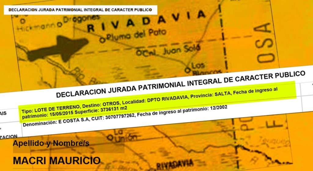 Siguen los escándalos con la declaración jurada del Presidente. Aquí revelamos que el campo que Macri declara en Salta es en sociedad con Nicolás Caputo, el mayor contratista de la Ciudad. Y … Sigue leyendo Macrigate: crédito y campo en Salta