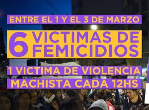 Marzo: en tres días, seis femicidios, uno cada 12 hs.