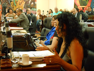 "Es un atropello que le nieguen la palabra a un concejal, y que este recinto este custodiado una vez más por la infantería. Estamos reivindicando los derechos humanos y la democracia, pero no se nota. Saludamos esta iniciativa de señalar y recuperar los centros clandestinos como espacios de la memoria. Luciano Arruga y sus familiares y amigos también siguen esperando poder ocupar el ex-destacamento de Lomas del Mirador", dijo la edil. La ordenanza se aprobó por unanimidad.