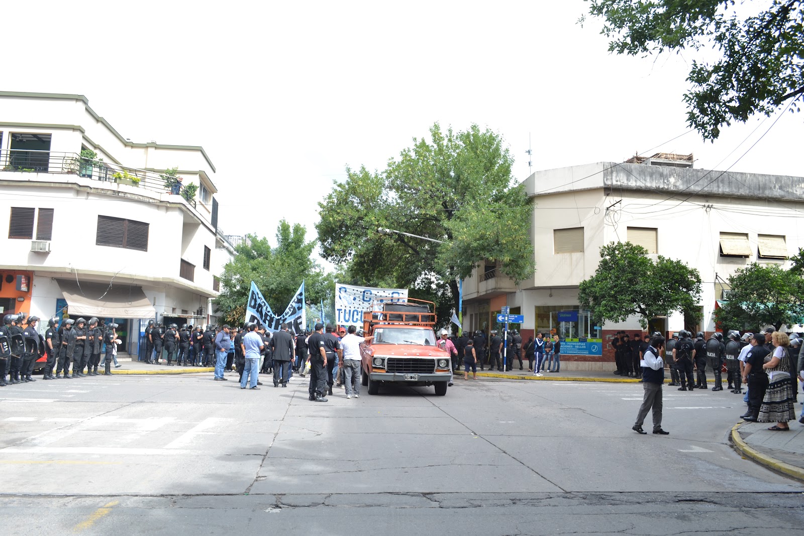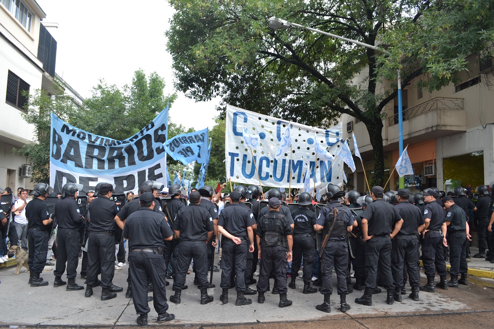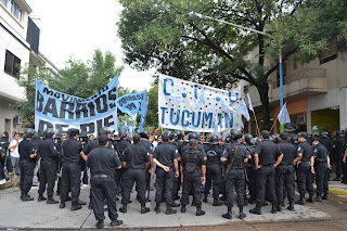 En la mañana de hoy, mientras marchaban hacia la legislatura provincial Barrios de Pie, la Corriente Clasista y Combativa y otras organizaciones, para plantear la necesidad de "2500 familias vulnerables", un importante operativo policial se interpuso entre los manifestantes, con presunta "orden de represión".