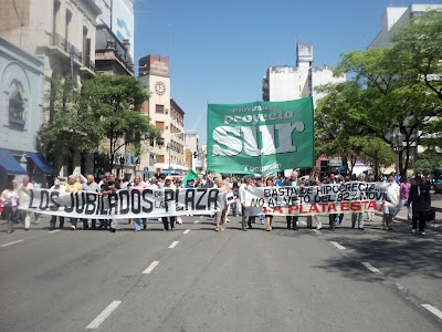 PROYECTO SUR ACOMPAÑO A LOS JUBILADOS DE LA PLAZA CONTRA EL VETO Y A FAVOR DEL 82 % MOVIL