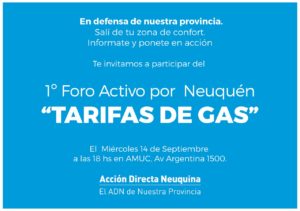 [Neuquén] Hoy: Foro Activo Por Neuquén sobre la tarifa de gas