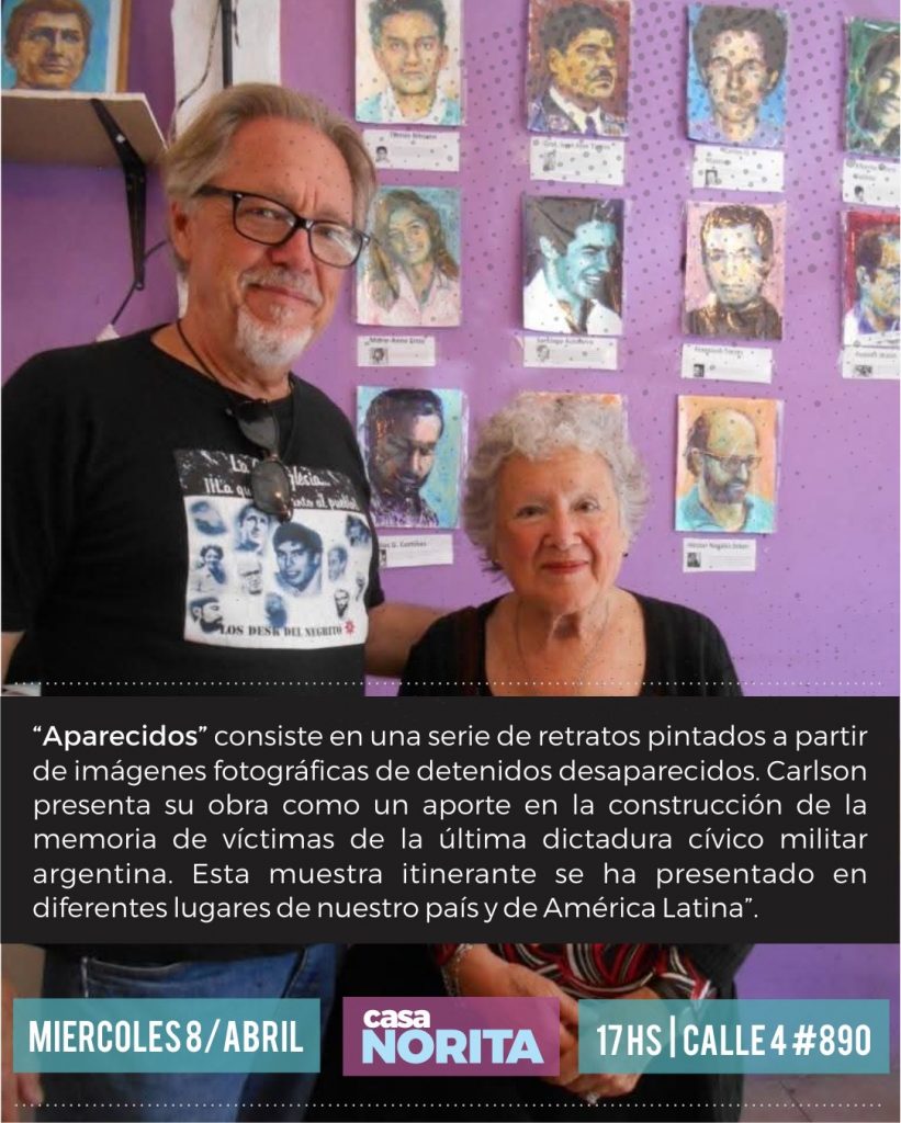 Será este miércoles 8 de abril y contará con la presencia del artista estadounidense, activista por los Derechos Humanos y profesor adjunto del Instituto de Arte de Milwakee, Brian Carlson, que retrata a personas desaparecidas en toda Latinoamérica.