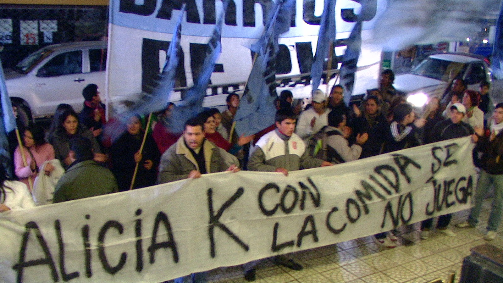 En la explanada del hotel donde se encuentra alojado el Vicepresidente Amado Boudou entre otros, Gastón Gómez Coordinador Provincial de Barrios de Pie expresó: "En un contexto de crecimiento de la Pobreza no se le puede retirar el plato de comida a más de 30.000 niños y niñas, que a pesar del fuerte crecimiento del país en los últimos 9 años y de que en nuestro país se producen alimentos para más de 300 millones de personas, todavía hoy dependen de los comedores comunitarios para tener una alimentación mínima, por que no han tenido la decisión política de resolver la pobreza estructural" "Desde hace más de 5 meses venimos reclamando una mesa de Dialogo para solucionar el problema y llevar el alimento  a los niños que asisten a estos comedores. Por eso vamos a ir mañana, 9 de Julio, a solicitarle a la Presidenta que instruya al Ministerio de Desarrollo Social para que solucione este conflicto".