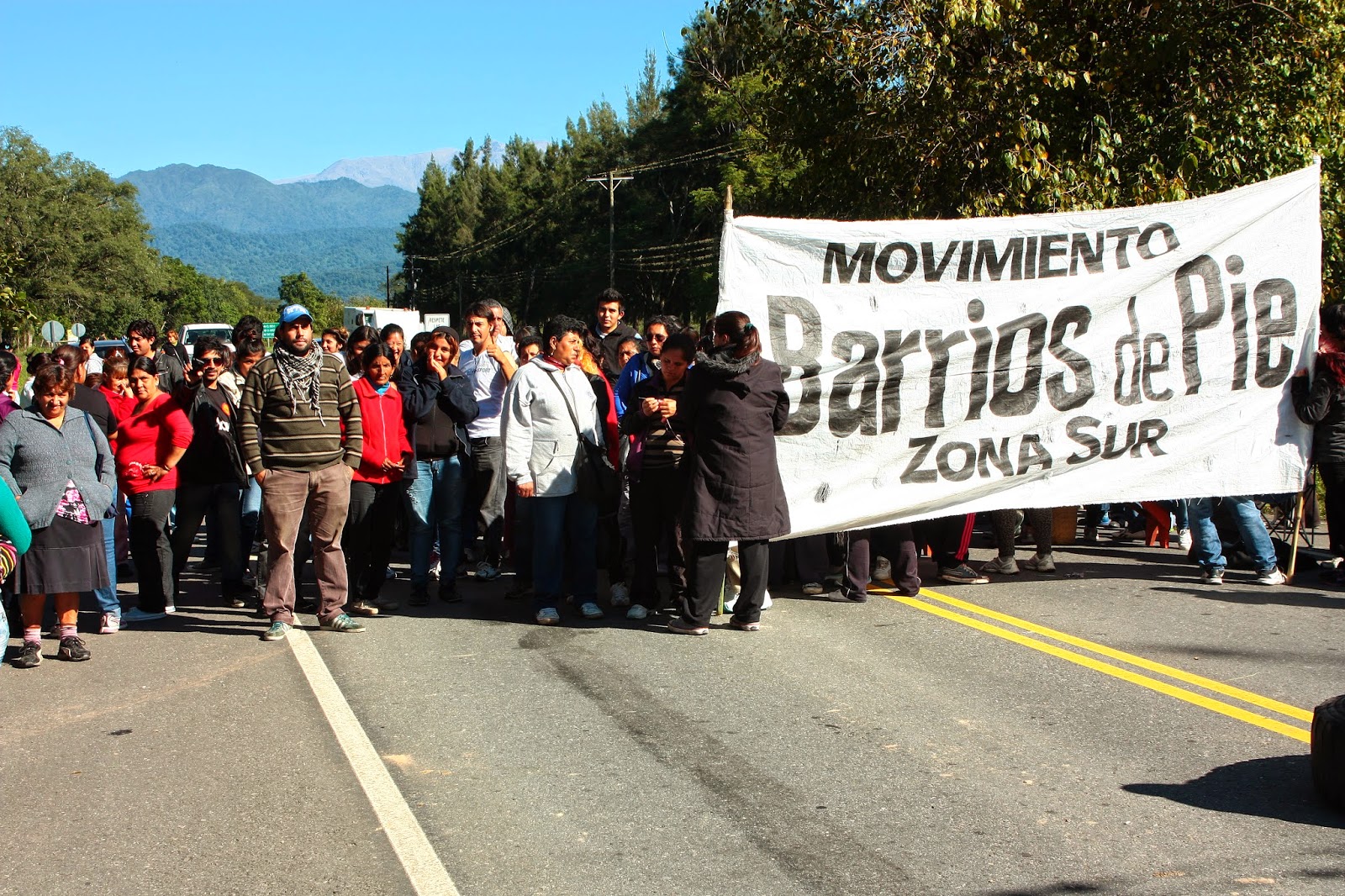 Integrantes del Movimento Barrios de Pie realizan un corte en la ruta provincial 307, en la zona de Las Mesadas, donde se inicia el ascenso al camino de montaña, por lo que es imposible acceder a Tafí del Valle. En forma pararela, bloquean la entrada principal a la nueva Terminal de Ómnibus, en San Miguel de Tucumán. Ambos piquetes comenzaron a las 10.